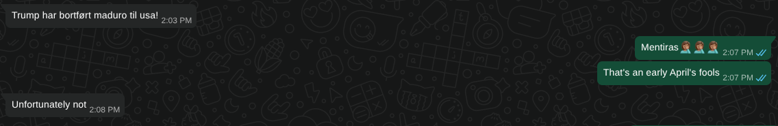 My husband: "Trump has kidnapped Maduro and taken him to the US!"